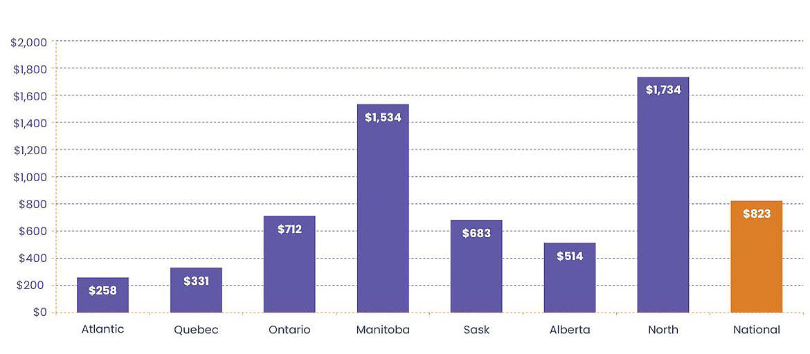 | Alberta | $2,778 | $51,661 | $9,388 | $1,020 | $125 |