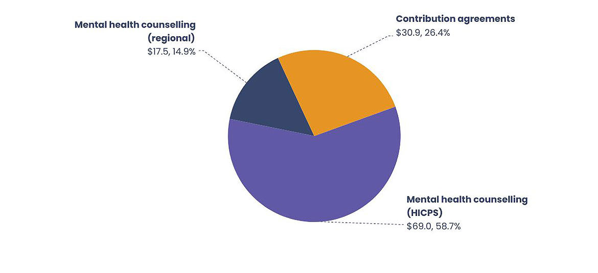 Mental health counselling services for clients in Nunavut and the Northwest Territories are funded via contribution agreements. As such, claim lines are not captured in the HICPS system.